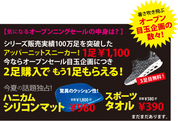 今ならオープンセール目玉企画につき「2足購入で もう1足もらえる!」