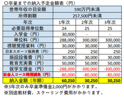 ◎社会人コースだけの特別減免で、費用負担がより少なく