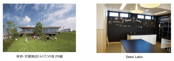 保育・児童施設「ふくろうの森」は、当社がコンタクトレンズの製造・研究開発拠点である鴻巣研究所の隣接地に、鴻巣市民と当社従業員の「育児と仕事の両立」を支援するために建設し、2018年4月に開園しました。全国的にも珍しい認可保育園、企業主導型保育園、放課後児童クラブを併せ持った、乳児期(0歳児)から学童期(小学6年生)までのお子さんの成長を見守り続けられる保育・児童施設です。「Seed Labo」では、当社社員による実験教室が定期的に行われています。