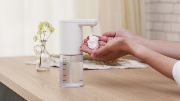 毎日使うからこそ意識したい衛生面。ディスペンサーの「プッシュ」を自動化することで、手を触れずにソープを抽出することが可能に。乾電池式を採用しているため邪魔なコードは排除、洗面台の小さなスペースにも設置できるスリムなデザインです。お子様でも簡単に、日々の手洗い習慣をより快適に、より楽しく感じていただけます。