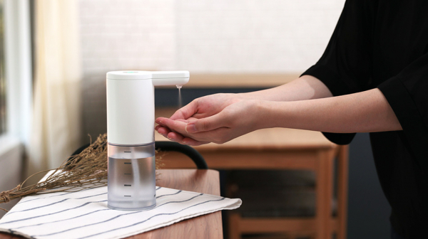 毎日使うからこそ意識したい衛生面。ディスペンサーの「プッシュ」の自動化で、手を触れずにアルコール消毒が可能に。乾電池式を採用しているため邪魔なコードは排除、ご家庭の玄関やダイニングテーブル等の小さなスペースから、オフィスやエントランスホールなどでもご使用いただけるスリムなデザインです。手の除菌を習慣化し、より衛生的で快適なライフスタイルをご提案します。