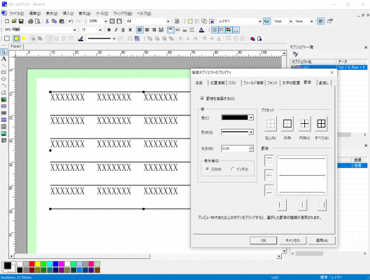 ・リストフィールドの罫線毎に表示状態や線種、太さ等を設定可能