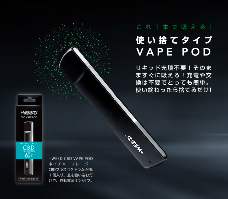 株式会社GREEN RUSH BY WEEDは、吸うCBD【+WEED(プラスウィード)】から、この度、使い捨てポッドタイプを2020年8月17日(月)より発売いたします。