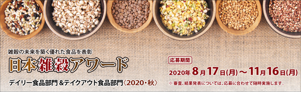 健全な雑穀の市場形成に取り組む、一般社団法人日本雑穀協会(会長/倉内伸幸 日本大学生物資源科学部教授)は、雑穀を使った優れた食品を表彰する、日本雑穀アワード デイリー食品部門&テイクアウト食品部門〈2020・秋〉について、応募期間を3カ月間に拡大して実施いたします。
