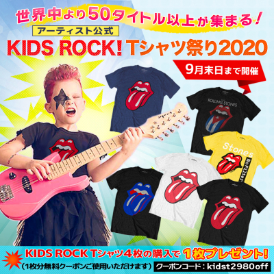 世界で唯一のローリング・ストーンズ専門店【Gimme Shelter】、日本最大のRock & Entertainment公式Tシャツ・グッズ・ストア【PGS】を運営する株式会社JAMSHOPPING(本社:東京都渋谷区代表取締役:遠藤祐一)は、日本初登場を含むアーティスト公式のKIDS ROCK! Tシャツを世界中より集めた「アーティスト公式 KIDS ROCK! Tシャツ祭り 2020」を開催いたします。
