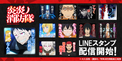 株式会社インクルーズより、TVアニメ「炎炎ノ消防隊」のLINEスタンプ第5弾となる最新作が新登場!第1弾では配信されていなかったキャラクターも追加され、さらに豪華に!各キャラクターのセリフだけでなく、日常で使用しやすい言葉もご用意しております。配信中のLINE着せかえやLINEスタンプ、LINE絵文字と併せて「炎炎ノ消防隊」の世界観をお楽しみください。