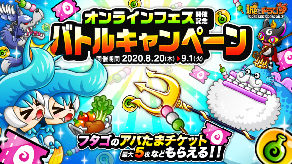 株式会社アソビズム(本社:東京都千代田区、代表取締役:大手智之)は、App Store・Google Playにて好評配信中の『城とドラゴン』で、2020年8月20日(木)より城ドラフェスティバル2020「オンラインフェス開催記念バトルキャンペーン」を開催いたします。