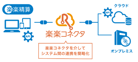 このような部分最適化の課題解消に向け、システム間の連携への需要が高まる中、ラクスはクラウド型経費精算システム「楽楽精算」とAPIを活用して簡単にシステム連携を実現する新機能「楽楽コネクタ」を開発しました。この機能を利用することで、「楽楽精算」と社内に点在する業務システムや基幹システム、さらにはクラウド上の様々なサービスがつながり、これまでシステム間で生じていた煩雑な作業なく業務の連携が可能になります。