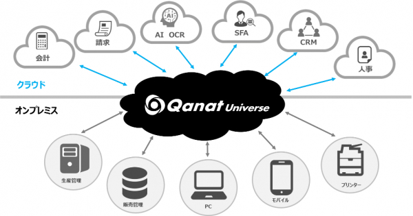 JBATが開発・販売する「Qanat Universe」は、基幹/業務システムやクラウドのサービス、PC、モバイルの他、IoTデバイスなど、社内(オンプレミス)、クラウド上の様々なシステムやサービスをシームレスにつなぐ、クラウド連携プラットフォームです。「Qanat Universe」を利用することで、利用者側は接続先を意識せず、素早く、低コストでシステムの連携と業務の自動化が実現できるようになるため、数多くのソフトウェアメーカーに自社製品との連携プラットフォームとして採用されています。