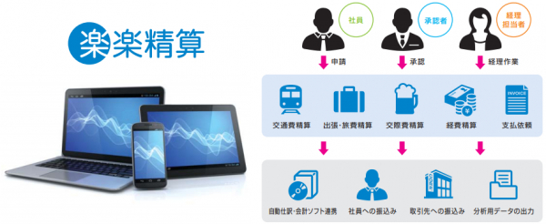 ラクスが開発・販売する「楽楽精算」は、交通費、旅費、出張費など、経費にかかわる全ての処理を一元管理できるSaaS(クラウド)型の経費精算システムです。「社員が申請⇒上司が承認⇒経理担当者の精算処理」という一連のワークフローを全て電子化することで、業務効率の改善や、人的ミスの防止を実現できるサービスとなっています。