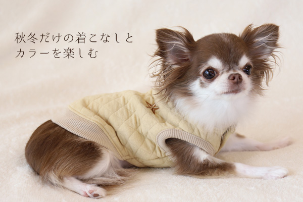 秋冬らしいシンプルで落ち着いた色合いは、どの犬種や毛色の子にも着せやすく、長く使えるデザインです。