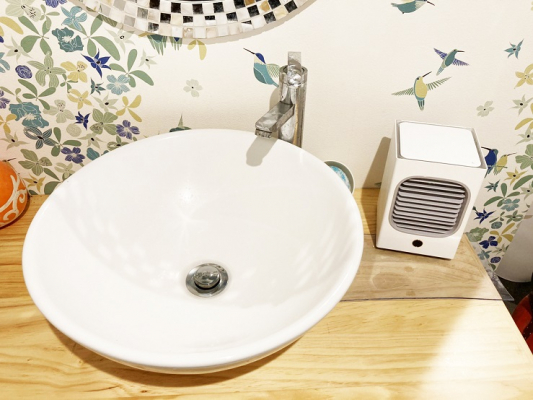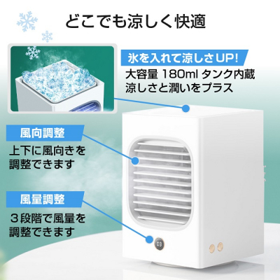・気化熱による冷却技術を採用したパーソナル冷風機(急速冷風3秒ですぐに涼しい)