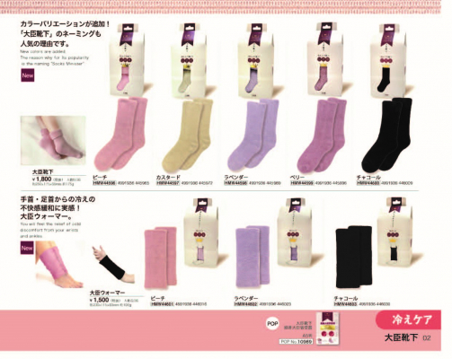 ★大臣靴下 (ピーチ、カスタード、ラベンダー、ベリー、チャコールの5色)各 1,800円(税抜)