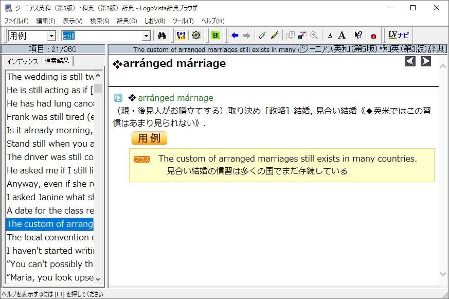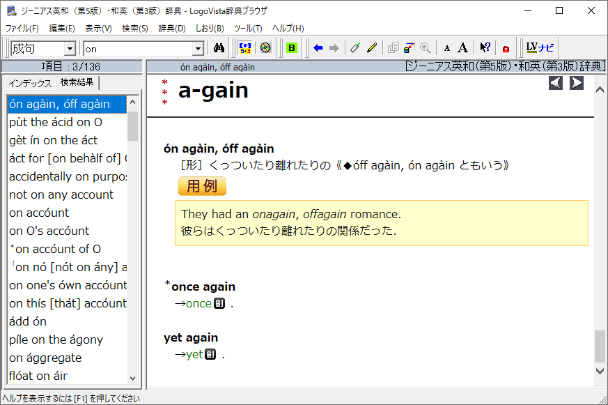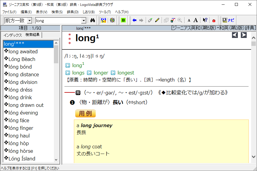 『ジーニアス英和(第5版)・和英(第3版)辞典』は、情報量では他の追随を許さない学習英和の決定版「ジーニアス英和辞典 第5版」と、よく使う日本語を網羅してその自然な英語訳を示した「ジーニアス和英辞典 第3版」を収録した製品です。“ジーニアス”ブランドの最新辞書を一本のソフトにまとめ、快適な辞書引きを実現しました。追加用例「ジーニアス用例プラス」や、ネイティブスピーカーによる見出し語発音音声を約10万語収録した「Genius Sounds for G5」で、学習を強力にサポートします。