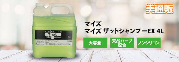 今回ピックアップした「マイズ ザットシャンプーEX」は、天然物抽出ハーブを配合した髪に優しいシャンプーです。きめ細やかで豊かな泡が髪を包み込んでスッキリと洗い上げます。泡切れが良いので、施術もスムーズ。ノンシリコンなので肌や頭皮を健やかに保ち、安心してお使いいただけます。