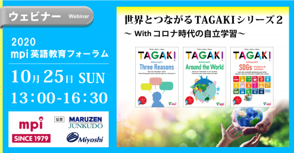 英語教育41年の株式会社mpi松香フォニックス(創立:1979年、代表者:竹村千栄子、以下mpi)は、「2020 mpi英語教育フォーラム ~世界とつながるTAGAKI シリーズ2 ~Withコロナ時代の自立学習~」を10月25日(日)にwebinarにて開催いたします。