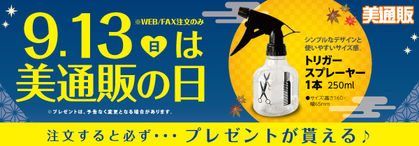 次回の「美通販の日」は2020年9月13日(日)。プレゼントアイテムは、「トリガースプレーヤー 1本 250ml」。1点だけでも商品を注文・購入するだけで、素敵なプレゼントがもらえるおトクな日ですので、この機会にたくさんの方々にご利用いただければと考えております。