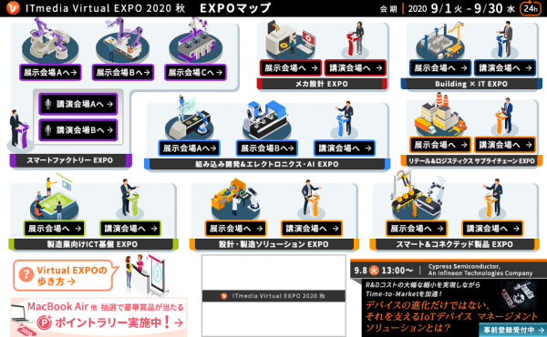 アイティメディア株式会社(本社:東京都千代田区、代表取締役社長:大槻利樹)は、モノづくりの最新テクノロジーやソリューションが集う国内最大級のバーチャル展示会「ITmedia Virtual EXPO 2020 秋」を、本日から9月30日まで、オンライン上で開催します。