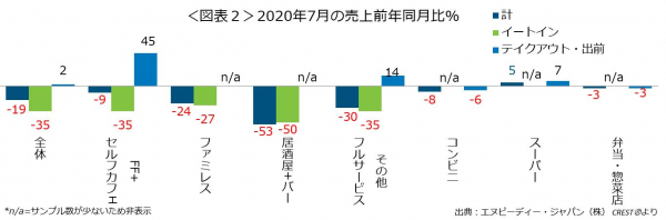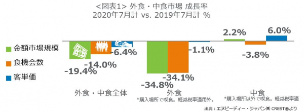 外食・中食市場の2020年7月は、売上19.4%減