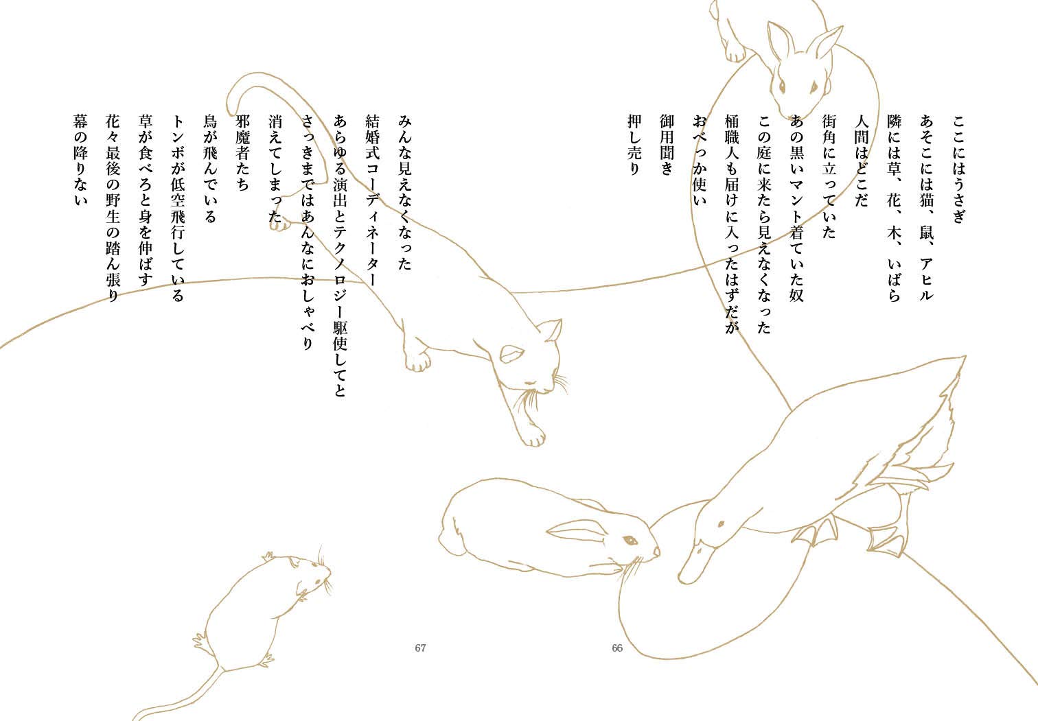 オカダミカのイラストレーションはカバーから本文、裏表紙へと繋がっていて