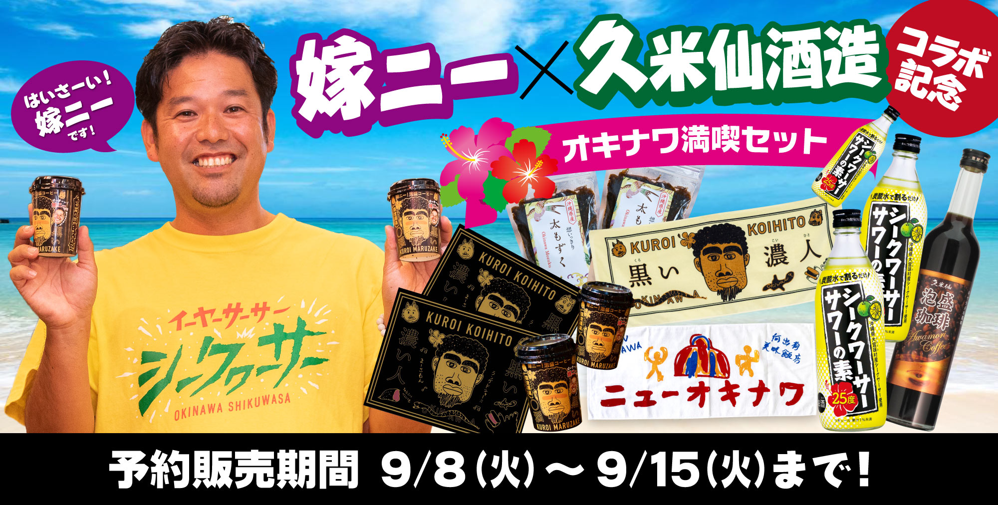 嫁ニーこと平良司さんがオープンした新店舗「ニューオキナワ」でしか手に入らない限定商品や、その他、夏の沖縄を感じて頂けるセット商品を久米仙酒造オンラインショップで販売スタート!