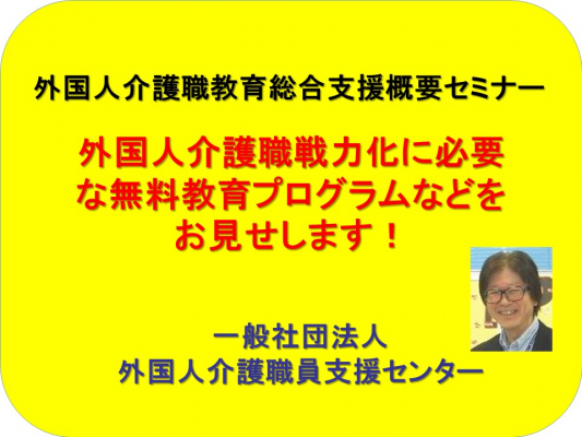 外国人介護職教育総合支援概要セミナー(無料)、各定員50名