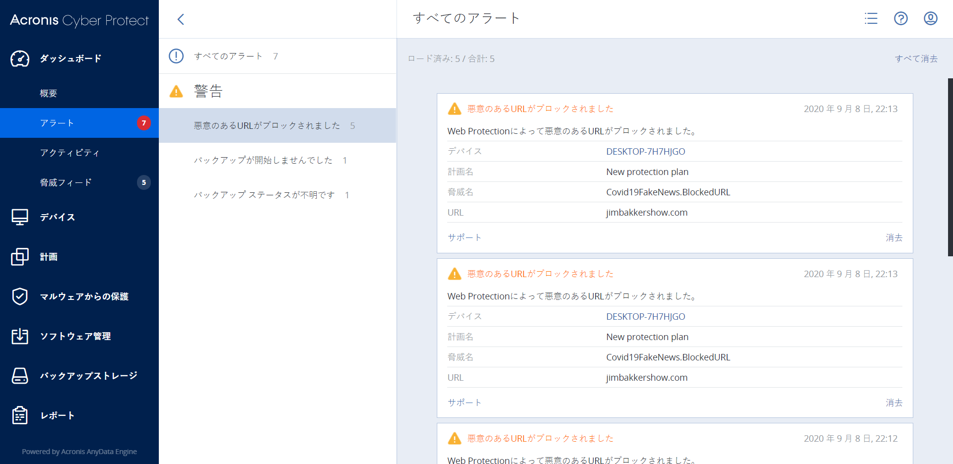 ● Acronis Cyber Protectのアンチマルウェアは、AV-TestやVirus Bulletinなどの第三者評価機関によるサイバーセキュリティテストで、マルウェア攻撃の検知率100%と誤検知ゼロを達成しています。