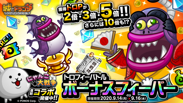 株式会社アソビズム(本社:東京都千代田区、代表取締役:大手智之)は、App Store・Google Playにて好評配信中の『城とドラゴン』で、「トロフィーバトル ボーナスフィーバー」を2020年9月14日(月)より開催いたします。