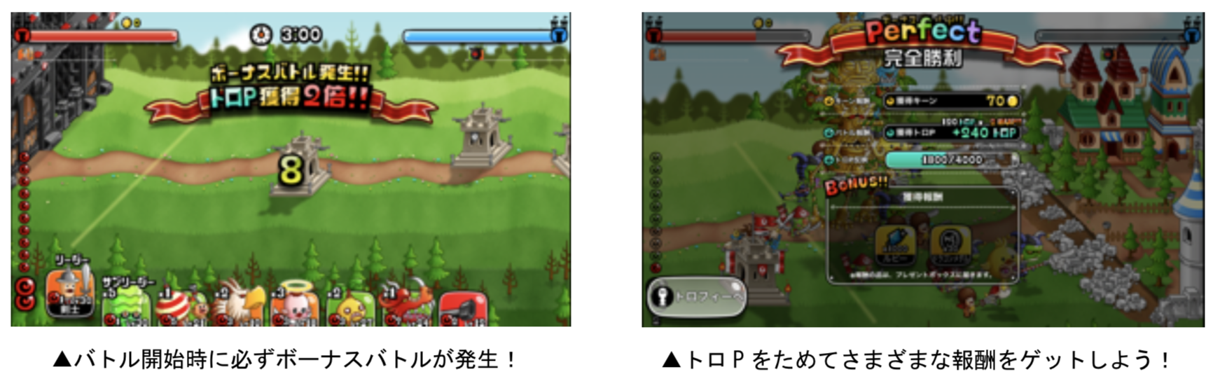 上記期間中、すべてのトロフィーバトルを対象に、バトル終了時に獲得できるトロPが“2倍/3倍/