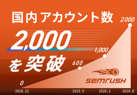 株式会社オロは、当社が国内総代理店を務める『SEMrush』(Semrush Inc.:米国マサチューセッツ州、CEO:Oleg Shchegolevが提供するサービス)の日本国内利用アカウント数が2020年8月末に2,000を突破したことをお知らせいたします。