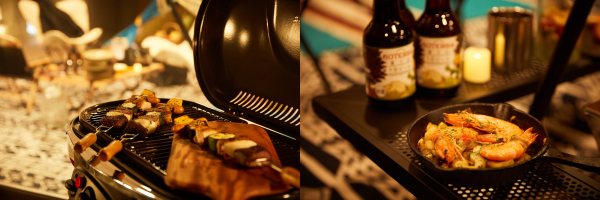 夕食は黒毛和牛や箱根山麓豚を使用した食材をBBQ形式でご用意。キャンプ気分を存分に味わうことができます。