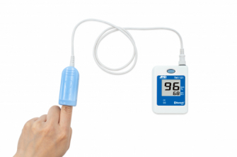 指先にクリップ式のセンサを装着するだけの簡単な操作で、身体に生命を維持するために必要な量の酸素が供給されているかどうかを確認することができます。
