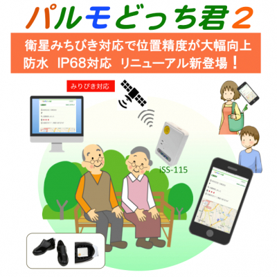 高齢化が進む社会で、高齢者の徘徊は大きな社会問題であり、多くの皆様がお困りの状況です。「パルモどっち君2」は、普段お使いになる衣服、靴、鞄に装着できる超小型のGPS端末です。そっと忍ばせて、持ち忘れを防ぐことを期待できます。エリア検出機能により、一定の範囲から外に出たことを検知して、予め登録したメールにお知らせが届きます。位置検索は、地図上にピンが表示され、簡単に位置がわかります。ボタンの押下で自分の位置情報を知らせることなど、抱負な機能を持ち、徘徊でお悩みの皆様にご安心を提供します。