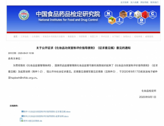 (7) 2020年9月1日「化粧品の効能の表示に関する評価に対する指導原則」(中国食品薬品検定研究院 意見募集通知)