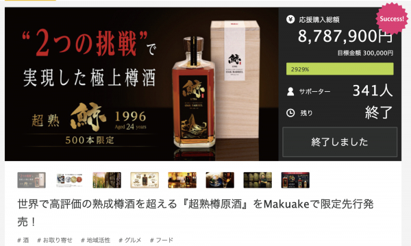 当商品は8/19(水)~ 9/18(金)までクラウドファンディングサイトMakuakeにて先行販売。プロジェクト期間中に341名の方よりご支援をいただき、目標金額2,929%を達成しました。