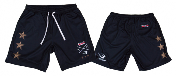 待望のTEAM ONEとのコラボ企画のセコンドウエアDRY シリーズ。ハーフスリーブ1・ロングスリーブ1・ハーフパンツ1の3タイプをご用意しました。左胸にTEAMONEとBODYMAKERのロゴにプラスしてKとRのローマ字入りのプリント。背中には、大きくTEAM ONEとBODYMAKERのロゴのプリント。そして、トレンドのヒョウ柄を星型にアレンジし、左胸・袖・背中に配し、クールに決めました。