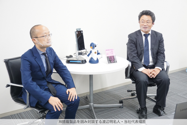 最後は、当社代表福原と「AIと将棋」をテーマとした対談が行われました。渡辺明名人よりAIと将棋の関連性について「将棋の学び方も時代の流れに合わせて多様化している。昔だと“地方のハンデ”があったと思うが、いまはネット将棋で強くなれる時代」とお話しいただきました。また福原は今回大会を主催した理由を尋ねられると「トリプルアイズが将棋業界を盛り上げていくポジションにあると思う。オンラインなどDX要素も盛り込んで企業側が場を作り、将棋文化を広げることに挑戦していきたい」と語りました。