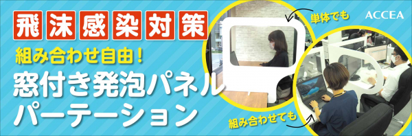 アクセアでは1セットからオーダーメイドでパーテーションを作成可能であり、お客様それぞれの環境に合わせた感染対策を実現することを目指し商品開発をしています。アクリル製のパーテーションをメインに販売しておりますが、設置のしやすさ、扱いやすさ、安全面などを考慮したラインナップを増やすべく、この度「窓付き発泡パネルパーテーション」の販売に至りました。設計当初はご要望をいただいたお客様にのみご注文をお受けしておりましたが、ご注文数が増加したことから2020年9月29日より正式に商品としてリリースいたします。