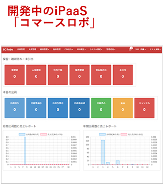 コマースロボが創業より計画している商取引に係る情報流通ハイウェーで、iPaaS、OMS、WMS、ERP(販売管理、仕入管理)、B2B Market Placeからなるクラウド型の基幹システムで、すべての業務プロセスのデータ処理を自動化するものです。