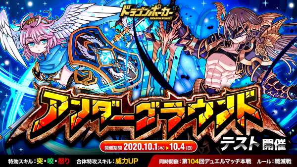 株式会社アソビズム(本社:東京都千代田区、代表取締役:大手智之)は、App Store・Google Playにて好評配信中のリアルタイム合体カードバトル『ドラゴンポーカー』で、2020年10月1日(木)より「アンダーグラウンド」をテスト開催いたします。