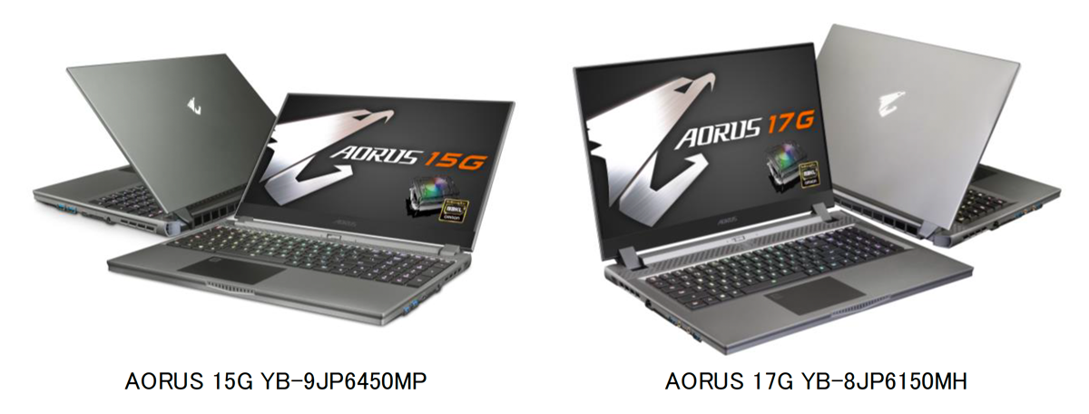 15.6型パネルを採用する「AORUS 15G YB-9JP6450MP」は、CPUにIntel Core i9-10980HKを採用し、GPUにNVIDIA GeForce RTX 2080 Super Max-Qを搭載しています。3mm幅の狹額縁フルHDパネルは最大リフレッシュレート300Hzに対応し、快適でスムーズなゲームプレイを実現します。一方、17.3型モデルとなる「AORUS 17G YB-8JP6150MH」は、CPUにIntel Core i7-10875Hを採用し、GPUにNVIDIA GeForce RTX 2080 Super Max-Qを搭載。同じく3mm幅の狹額縁フルHDパネルは最大リフレッシュレート300Hzに対応します。いずれの製品も、GIGABYTE独自の冷却機構WINDFORCE Infinityにより、CPUとGPUの性能を最大限引き出すとともに、Killer Ethernet E2600とKiller Wi-Fi 6 AX1650のデュアルネットワーク機能により、ネットワーク帯域をゲームプレイに優先的に割り当てることもできます。