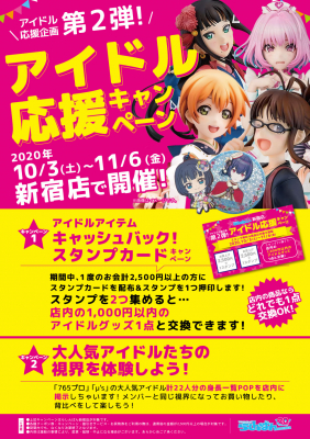 名称:らしんばん新宿店 アイドル応援企画<第2弾> 「アイドルアイテムキャッシュバック」「アイドルグループメンバーの視界を体感できちゃう!?」