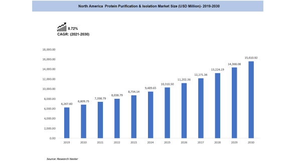 タンパク質精製とは、複雑な混合物から単一タイプのタンパク質を分離することを目的とした一連のプロセスを指します。タンパク質の単離と精製は、多くの実験の最初のステップの一つであり、タンパク質の構造や生物学的活性の測定に役立ちます。世界および東南アジアのタンパク質精製および単離市場は、2019年に6,267.60百万米ドルに達し、2021-2030年の予測期間中に世界中で8.65%のCAGRを登録することにより、2030年までに15,610.92百万米ドルに達すると予想されています。