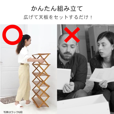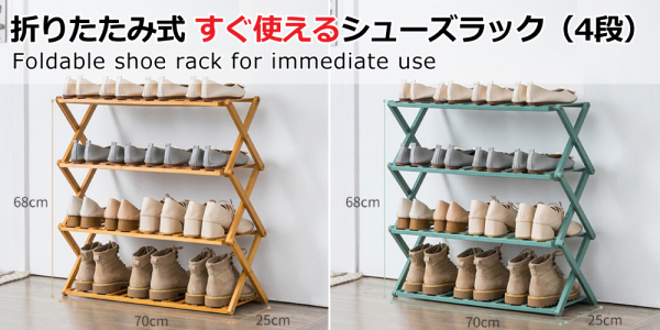 2)品名:折りたたみ式 すぐ使えるシューズラック(4段)