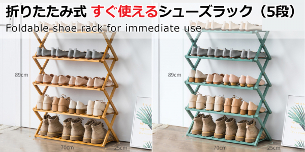 3)品名:折りたたみ式 すぐ使えるシューズラック(5段)