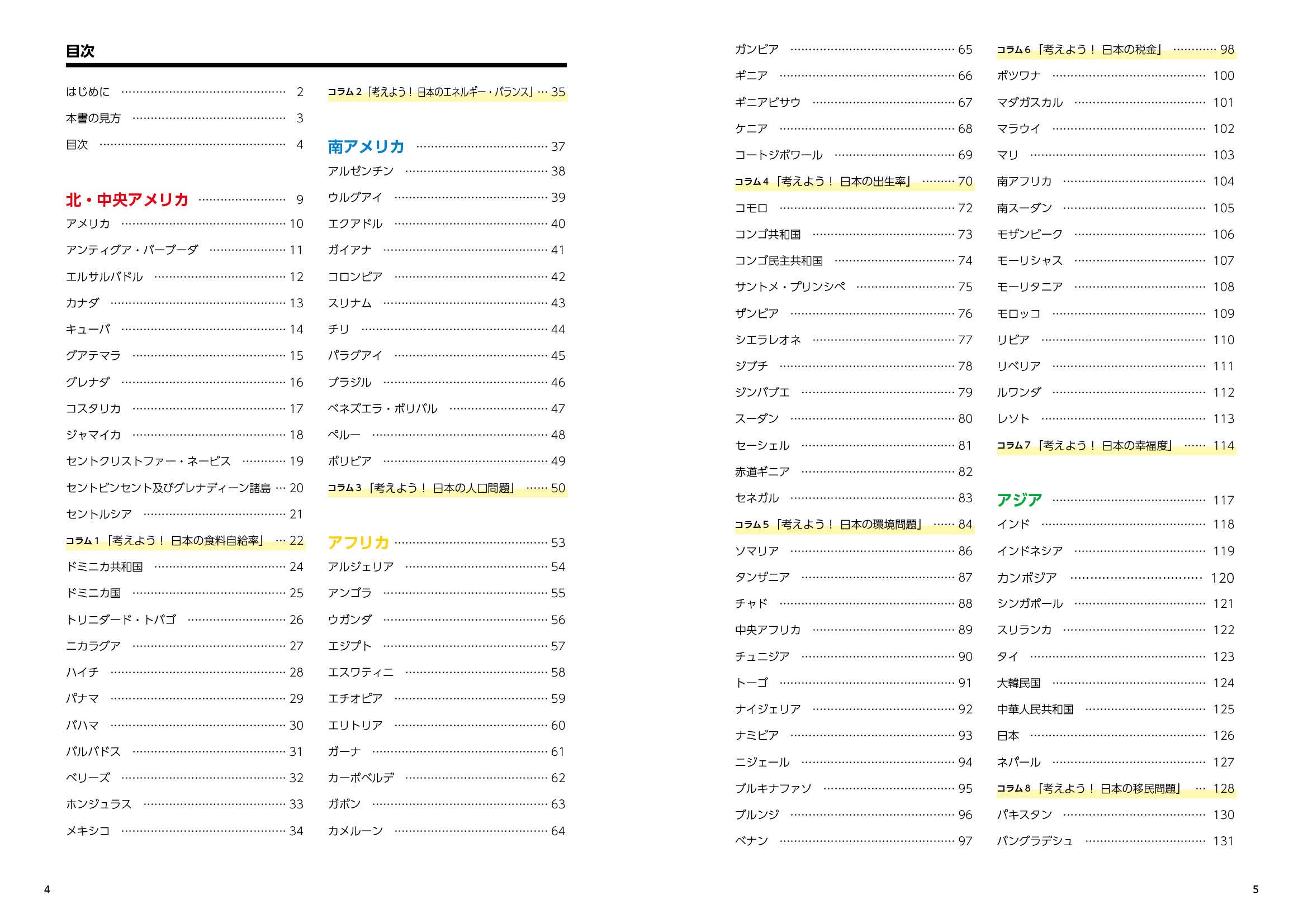 また、国と国が比較しやすく、わかりやすい文章でまとめているので、小学校高学年以上の社会科の授業や