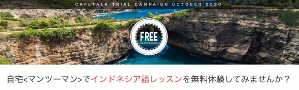 世界中の講師と生徒をつなぐオンライン習い事サイト「カフェトーク(http://cafetalk.com/)」を運営する株式会社スモールブリッジ(本社:東京都渋谷区、代表取締役:橋爪小太郎)は、2020年10月9日、カフェトークのインドネシア語カテゴリーのレッスンを最大3回無料で試せる受講モニター募集を開始しました。
