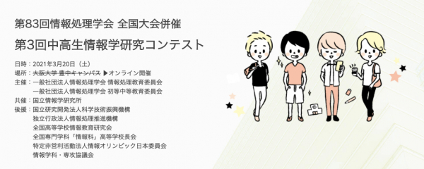 一般社団法人情報処理学会(会長:江村克己)は、「第3回中高生情報学研究コンテスト」(2021年3月20日開催、第83回全国大会併催)の申込受付を本日より開始しました。