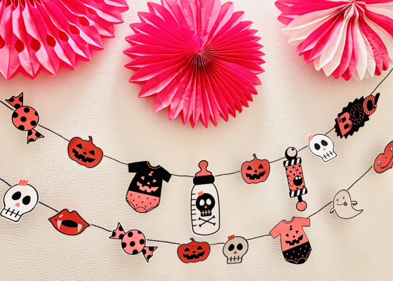 壁面に飾るならガーランドもおすすめ。パーツを切り取って、バランスをみて紐や糸にテープなどで留めていきましょう。