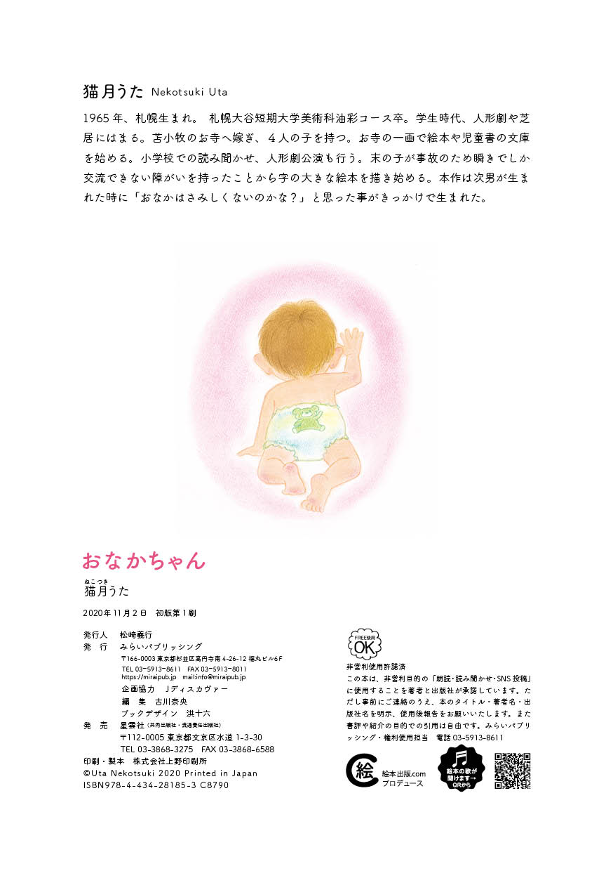 みらいパブリッシング(所在地:東京都杉並区高円寺、代表取締役:松崎義行)は『おなかちゃん』 を2020年10月30日に刊行します。 著者:A5判 上製 32ページ 本体 1300円+税 ISBN:978-4-434-28185-3 書籍詳細:https://www.amazon.co.jp/dp/4434281852